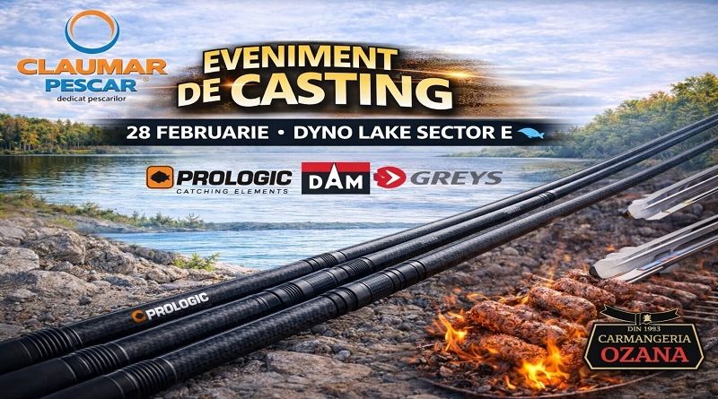 Claumar Pescar și Pure Fishing  vă invită sâmbătă 28 februarie, pe sectorul E din Complexul Dyno Lake la o sesiune de casting cu lansetele Prologic, DAM, Greys.