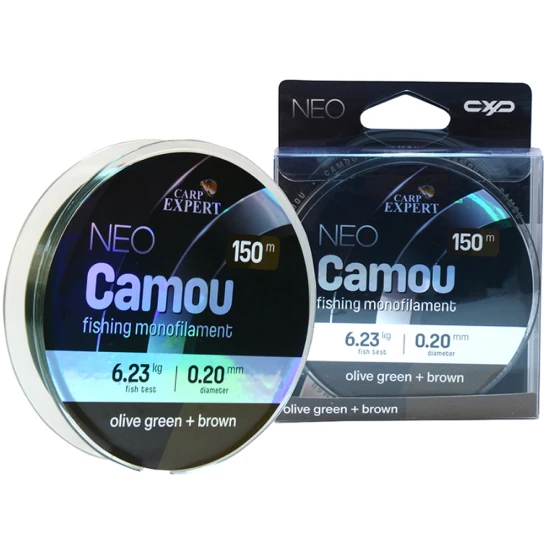 Firul  CARP EXPERT NEO CAMOU reprezinta un nivel deasupra clasei SMART, unde firul prezinta deja o solutie de camuflaj  pentru a ajuta la o prezentare mai naturala. Designul bicolor – verde masliniu si maro – descompune conturul firului, facandul mai putin vizibil in apa, comparativ cu firele de o singura culoare.