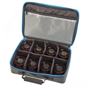 Sunset RS Competition este o geanta semirigida care se remarca prin dimensiunile ei generoase, cu un design optimizat, dispunand de 8 compartimente reglabile, recomandata pentru depozitarea si transportul a pana la 8 tamburi de rezerva (indiferent de dimensiunea acestora) cat si a catorva accesorii de pescuit (care pot fi depozitate in buzunarul interior).