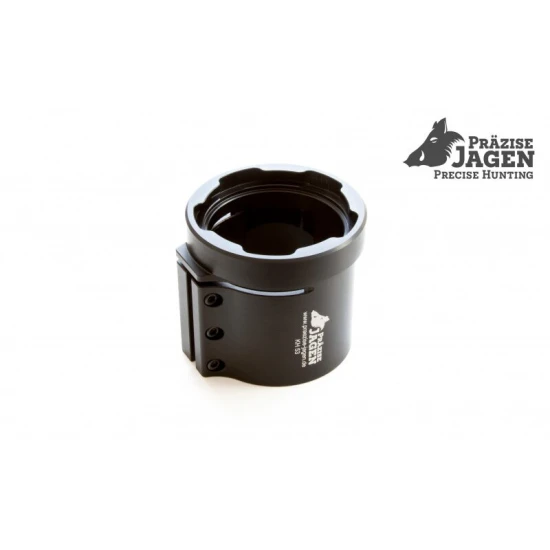 Base Clamp de la Prazise Jagen este un manson de prindere conceput pentru montarea sigura si precisa a dispozitivelor tip clip-on pe lunetele de carabina. Acesta se monteaza direct pe obiectivul lunetei, unde ramane fixat permanent, oferind o baza stabila pentru atasarea rapida si repetabila a echipamentelor optice suplimentare.
