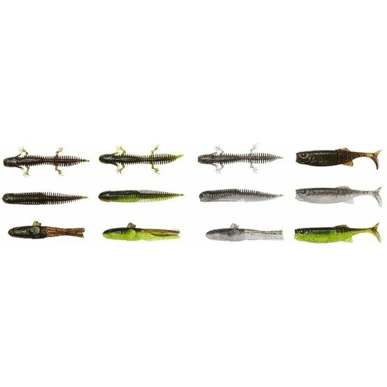 Savage Gear Ned Lure Kit este un set complet conceput pentru pescarii care doresc sa abordeze eficient tehnica Ned rig, oferind o selectie atent aleasa de naluci si jiguri. Pachetul contine 24 de naluci moi plutitoare realizate din material Duratex, distribuite in patru modele diferite: Salamander de 7,5 cm, Goby de 7 cm, Minnow de 7,5 cm si Dragon Tail de 7,5 cm. Fiecare model este disponibil in trei culori consacrate, Green Pumpkin, Chartreuse Pumpkin si Holo Baitfish, fiind incluse cate doua naluci din fiecare culoare. Setul este completat de patru jiguri dedicate tipului Ned, marimea 1, cu greutati diferite pentru adaptare la diverse conditii de pescuit.