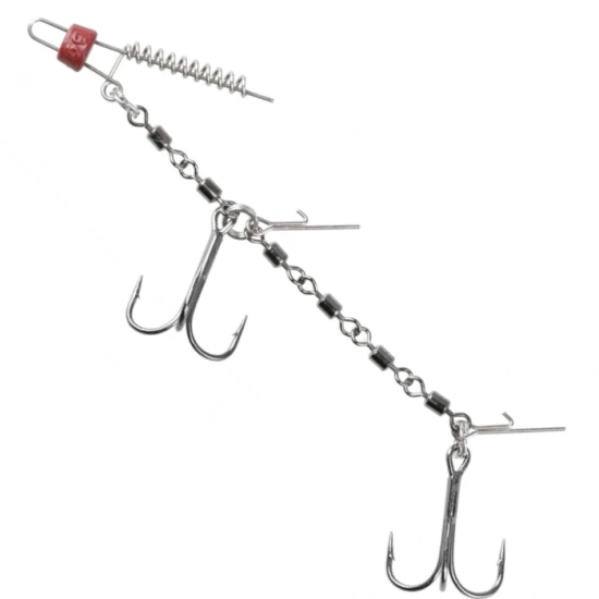 Mikado Stinger Jaws Double Evo Stinger este o montura fabricata pentru atasarea shad-urilor de dimensiuni mari, totodata aceasta se poate utiliza cu un real succes si cu momeli vii. Struna este realizata din varteje fiind echipata cu doua ancore ascutite din otel inoxidabil.