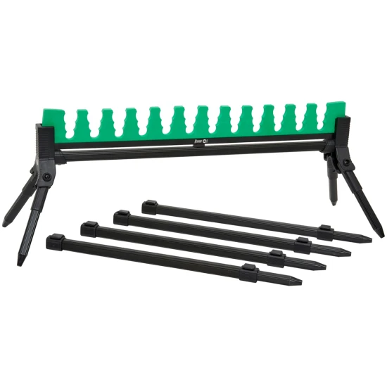 Suportul Sensas Roost Rig Allround 12 este un suport practic pentru organizarea si depozitarea pana la 12 lansete sau kituri de varf in timpul sesiunilor de pescuit. Acesta asigura o pozitie ordonata a lansetelor, permitand acces facil si mentinerea echipamentului protejat intre aruncari. Constructia robusta cu materiale rezistente ofera durabilitate in utilizare frecventa, iar designul usor si compact permite transportul si montarea simpla pe malul apei. Orificiile de sustinere sunt dimensionate astfel incat sa accepte diametre variate ale blank-urilor, oferind un suport sigur pentru lansete in timpul pauzelor sau intre runde. Suportul este potrivit pentru pescarii care vor sa isi pastreze lansetele organizate si usor accesibile in timpul partidelor de pescuit.