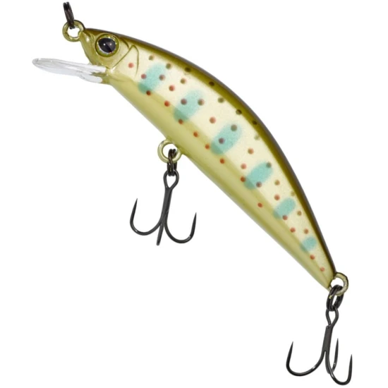 Naluca foarte stabila chiar si in curenti puternici. In timpul scufundarii naluca vibreaza in jurul axei sale. Il poti folosi pentru a pescui la pastravi mari, biban sau clean. Unele culori contin puncte UV. Lungime 5.6 cm, greutate 4.3g, evolutie adancime 1-1.2m, naluca plutitoare. De asemenea, dispune de ochi 3D realisti, 2 ancore din otel inoxidabil si un sistem intern cu bile (rattlin), care sporeste efectul sau atragator asupra pestilor si ii determina sa atace.